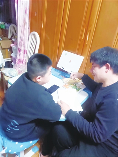 陈佃乐(右)与儿子一起学习,是属于爷俩的快乐时光。