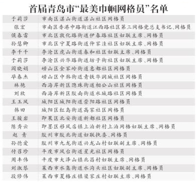 早报1月3日讯 记者从崂山区社会治理中心得知,日前,青岛市妇联、青岛市综治中心联合开展寻找“最美巾帼网格员”活动,从全市一万多名女性网格员中推选出20名首届青岛市“最美巾帼网格员”,其中崂山区网格员阎晓娟、毕春杰光荣上榜。