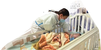 一位“爱心妈妈”温柔地抚慰着宝宝。