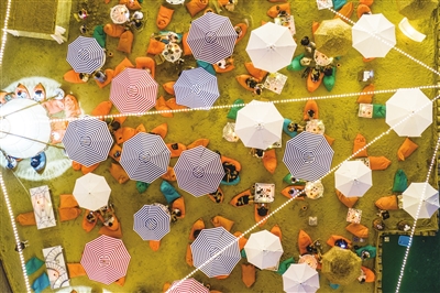 8月2日 出伏后,岛城夜晚的气温有所降低,但海边的人气未曾减少。随着沙滩酒吧、咖啡吧等时尚业态的引入,第一海水浴场成为青岛夜经济的新地标,给老城复兴注入了新活力。