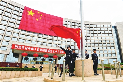 10月1日 青岛市庆祝中华人民共和国成立七十三周年升国旗仪式在市级机关办公楼广场隆重举行。