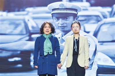 1月24日 2021年度“感动青岛”道德模范颁奖典礼上,李涌的妻子和女儿代表李涌上台领奖。