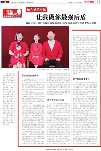 就这样,去年腊月二十九,丈夫刘涌超踏上了新的征程,妻子周俊兵也肩负起更多重担,她说:“我们在各自的岗位上学会承担。守住大家才有小家。为了岁月静好,我们携手负重前行。”