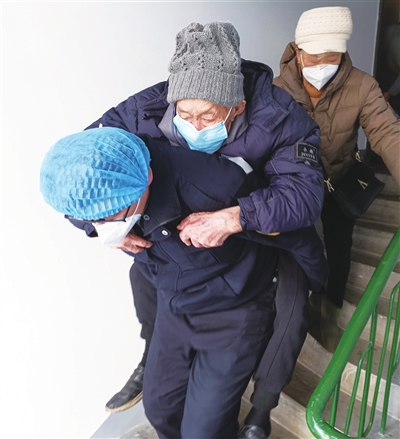 病情一刻不能拖延。危急时刻,宋涛和家属说明情况,在同事的协助下,躬身背起老人,在保证平衡的情况下快步向楼下走去。“老人身材较高,加上穿着厚重棉衣,体重应该在100斤以上,当时也没多想,就是想着能快点把老人背下楼,送到急救车上转移到医院,担心拖延时间有生命危险。”宋涛回忆说。他背起老人刚下一层楼时,还没怎么感觉累。但到了第二层,就觉得双腿发抖,力不从心了。因为背的是一名百岁老人,老人病情随时会加重。宋涛想,一定要让老人在自己后背上舒服一些,这样有利于老人呼吸顺畅。
