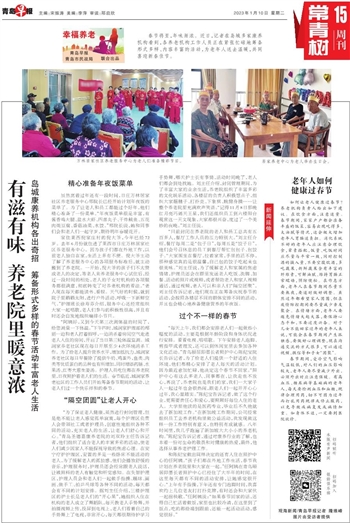 “每天上午,我们都会安排老人们一起做些小幅度的活动,主要是根据年龄阶段和身体状况进行安排。看看电视、唱唱歌。下午安排老人泡脚、剪指甲或者理发,还可以到休闲室里去参加各种文化活动。”青鸟颐居即墨长者照护中心陈纪宝院长告诉记者,为了给老人们提供一个舒适的入住环境,他们都精心安排了老人每天的活动计划。因为最近愈加忙碌,他决定这个春节不回家。“照护中心有这么多老人、同事都在,让我走也不放心,再说了,养老院也是我们的家,我们一大家子人一起过年也会很热闹,跟老人们一起开开心心过年,我心里踏实。”陈纪宝告诉记者,做了这个行业,更需要责任心和爱心,要照顾好每位入住的老人。大学里他读的是医药专业,毕业后不久他就去了新加坡工作。“在新加坡工作期间,公司经常组织员工去养老机构里做公益活动,我发现做这样一份工作特别有意义,也特别有成就感。八年时间里,我几乎跑遍了新加坡大大小小的养老机构。”陈纪宝告诉记者,通过对康养行业的了解,也本着一份对生命的敬畏和对健康的热爱,最终,他选择从事养老护理工作。