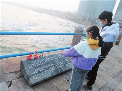 1月8日下午,记者来到位于东海西路的海滩边,因为是周末,很多市民正沿着海边漫步。虽然海边刮着阵阵海风,但并没有影响人们游玩的兴致。夕阳的余晖洒在海边的护栏上,在路过天林花园西南角时,偶尔会有人低头驻足,因为这里设立的大理石纪念碑上,记录着青岛市民葛路的英雄事迹。事隔这么多年,人们是否还记得葛路这位救人英雄?