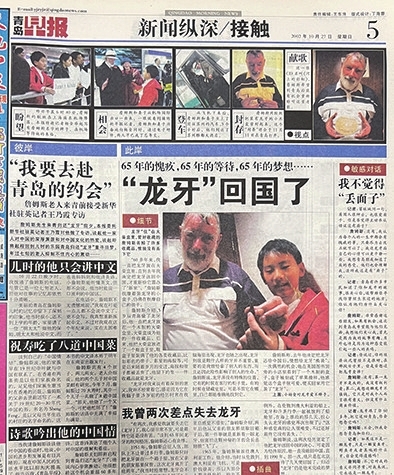 詹姆斯在此前与记者的邮件往来中不断提及当年回青岛归还“龙牙”时的种种细节。“在姐姐去世后的第二年,我给青岛早报编辑部写了一封信,感谢《青岛早报》的编辑记者,帮我完成了这个心愿。”“抵达青岛的那一刻,是2002年11月11日,那是我魂牵梦绕的一刻,人总是把孩提时生活的地方当成自己的故乡,在我的脑海里,青岛就是我的故乡”……如此充满着炙热情感的怀念让每一位与詹姆斯先生接触的人都会生发出对那段既往岁月的感怀。