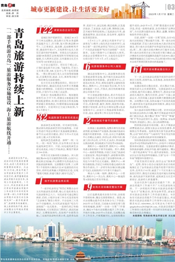 老城区保护更新项目。老城区40.4万平方米完成整治,黄岛路片区等21条道路改造提升完工,四方路、复兴里(潍县路19号)、三江里街区、海泊路、高密路顺利开街,建成停车场4个,王统照等5处名人故居正进行保护性修缮。老青岛文化旅游区创建5A级景区总体规划和专项规划完成编制,引入欧洲生活馆、文布嘉措文化艺术空间等122家新业态企业。