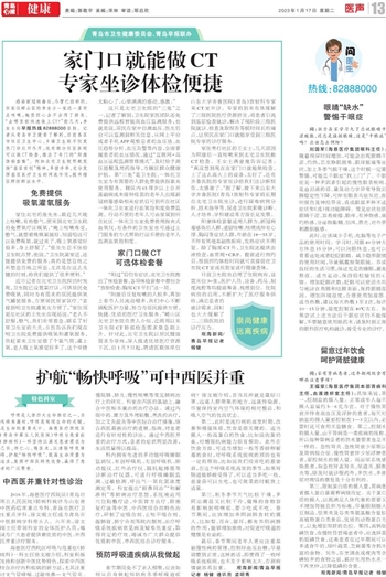 感染新冠病毒后,尽管已经转阴,但家住崂山区的李女士一家还一直有点咳嗽,她很担心会不会得了肺炎。“去哪里能快速做上CT?”前几天,李女士向早报热线82888000求助。记者从青岛市卫健委了解到,目前各区市社区卫生中心、乡镇卫生院不仅发热门诊应开尽开,也有部分社区医院可以做CT检查,推出了专门的“阳康体检套餐”。例如北宅卫生院积极发扬“基层首创”精神,多措并举,充分发挥基层医疗卫生的网底作用,提升辖区群防群治水平。