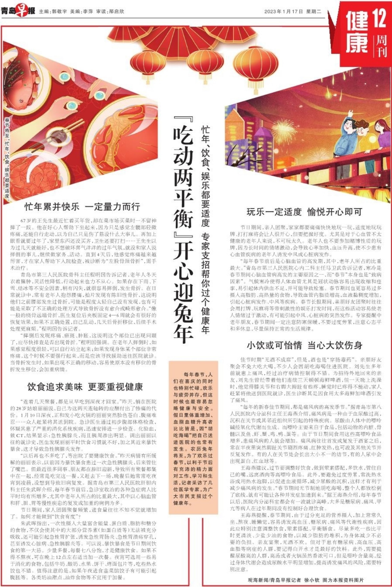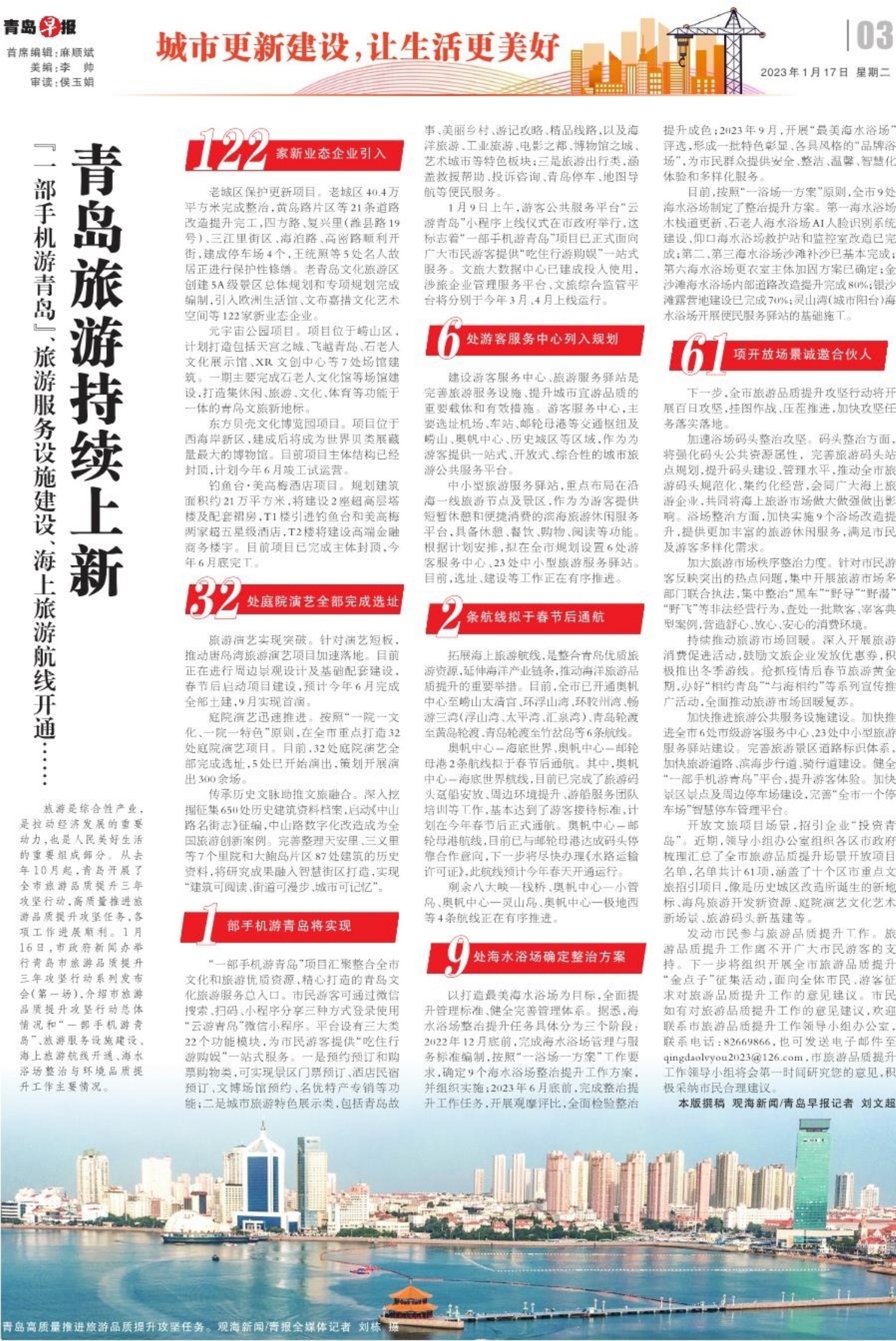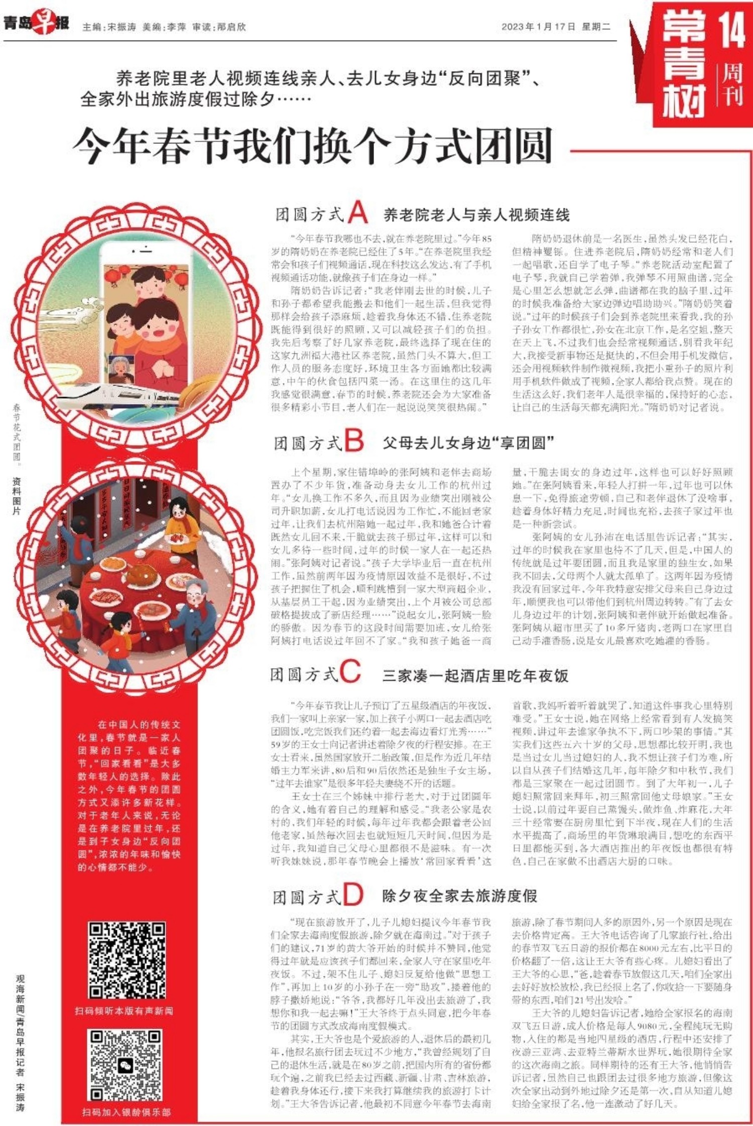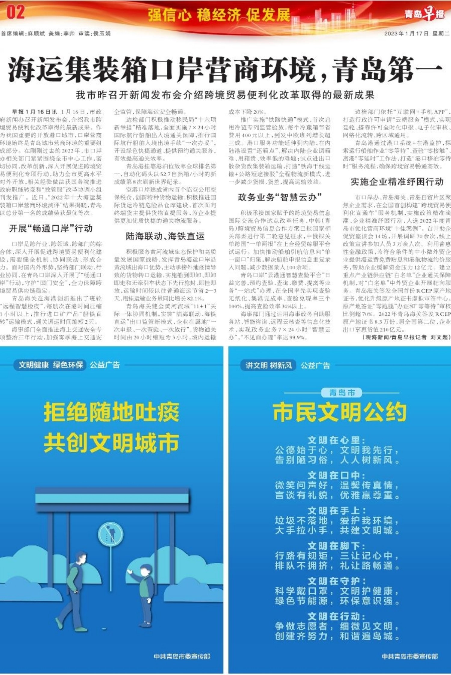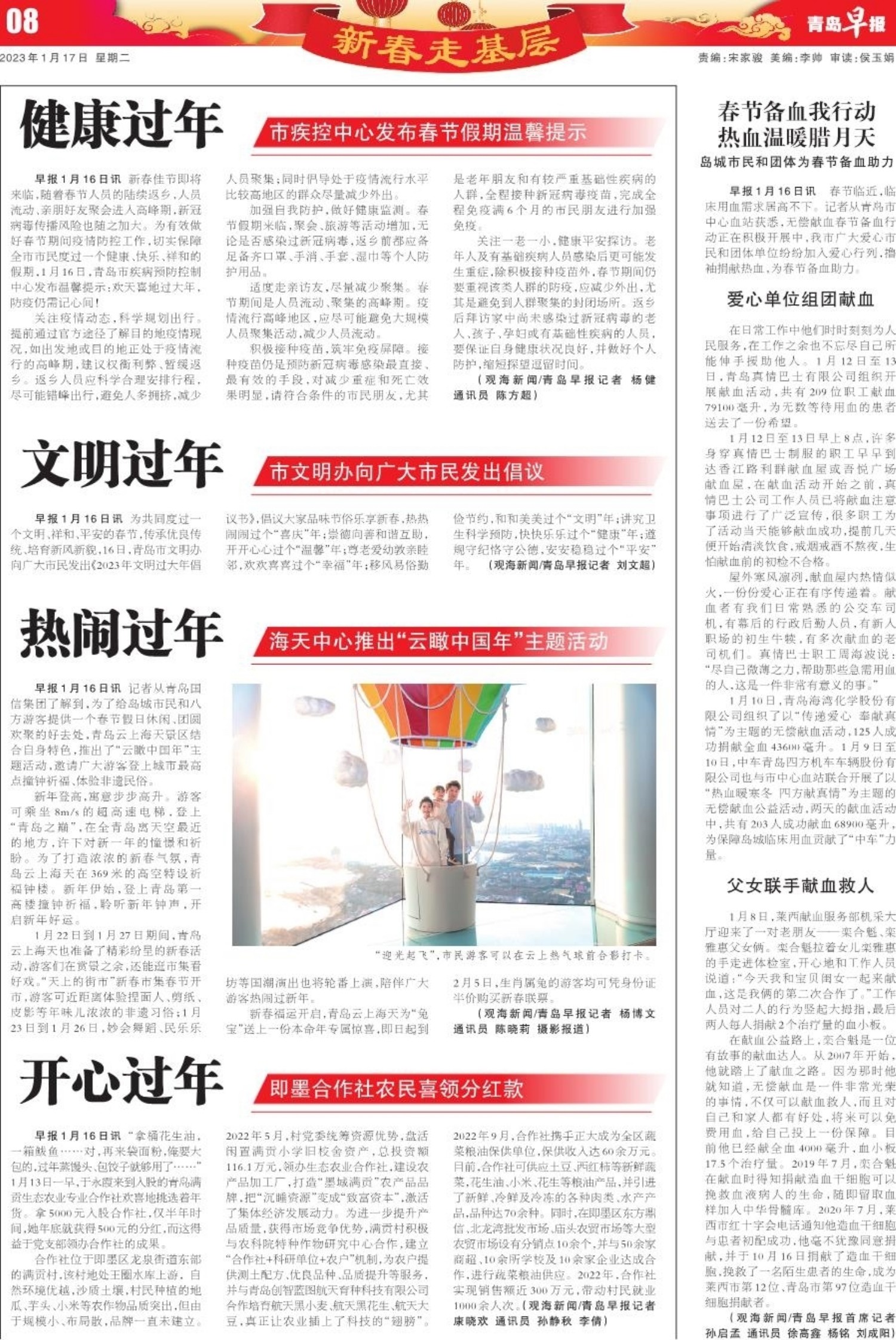 A01 头版 A02 强信心 稳经济 促发展 A03 城市更新建设,让生活更美好 A04 暖新闻 A05 青岛面孔 A06 新春走基层 A07 新春走基层 A08 新春走基层 A09 创建全国文明典范城市 A10 都市圈 A11 文体 A12 健康周刊 A13 医声 A14 常青树周刊 A15 才艺 A16 天下