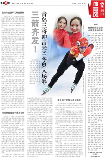 在今年1月22日进行的第31届世界大冬会短道速滑女子3000米接力决赛中,由青岛姑娘贾惠凌和王艺潮、郝卫莹、蔡申依组成的中国队以4分14秒642的成绩获得银牌;韩国队以4分12秒557的成绩夺冠,美国队名列第三。