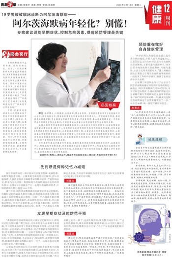 日前,记者就这些读者关心的问题采访了青岛市市立医院脑科中心主任谭兰,她指出,无论多大年龄人群,如果出现了明显的记忆力下降等症状,或者有明确的家族史,就应该到医院进行相应检查和筛查。同时,阿尔茨海默病是可以预防的,有效控制危险因素、合理利用保护因素,健康管理自身生活方式,可以显著降低患病率。