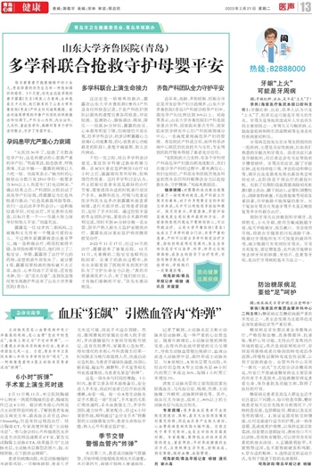 主动脉夹层是心血管疾病中死亡率最高的疾病,是心血管“急症中的急症”,临床上称之为“不定时炸弹”。一旦遭遇主动脉夹层的致命打击,患者必将面临九死一生。日前,青岛市市立医院本部心外科与多学科协作“闯关”,为一例病情危重的A型主动脉夹层患者成功“拆弹”。