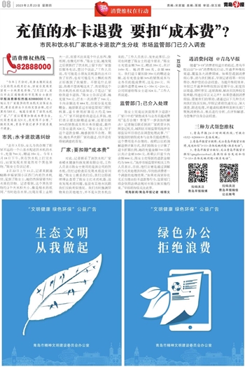 “今年1月份时,我拿水桶到设在小区的饮水机里打水,回家后发现里面有一小块黑色异物。”2月22日,家住市北区通榆路的市民陈女士拨打早报消费维权热线82888000反映,她认为厂家提供的饮水机无法保证水质,要求退掉水卡内的充值余额,经计算约589元。她随后联系了该饮水机厂家,“厂家以需要扣除成本费为由,仅同意退款324元,我觉得不合理。”接到反映,青岛早报记者多方联系展开调查。