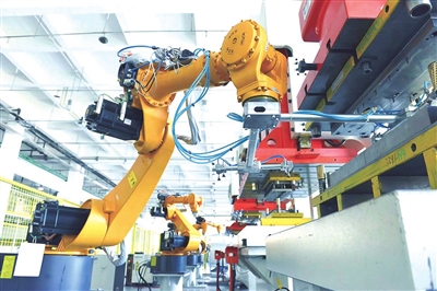 澳柯玛工业园内,智能机器人在流水线上作业。资料照片