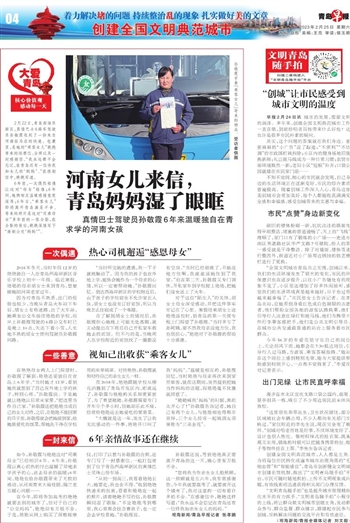 2月22日,青岛西海岸新区,真情巴士6路车驾驶员孙敬霞收到了一份来自河南驻马店的快递。包裹里,是她的“乘客女儿”艳艳寄来的按摩仪、合照以及一封感谢信。“我永远都不会忘记,在青岛还有一位待我如女儿的‘妈妈’。”在感谢信中,艳艳写道。