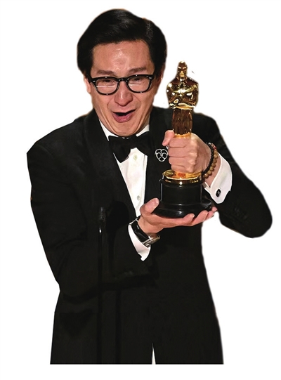 与杨紫琼一同拿下小金人奖杯的,还有亚裔演员关继威,他凭借在电影《瞬息全宇宙》中的精彩表演获得了最佳男配角奖,站上领奖台,他激动地大喊:“梦想是你必须要坚信的事情,请点亮你的梦想。”