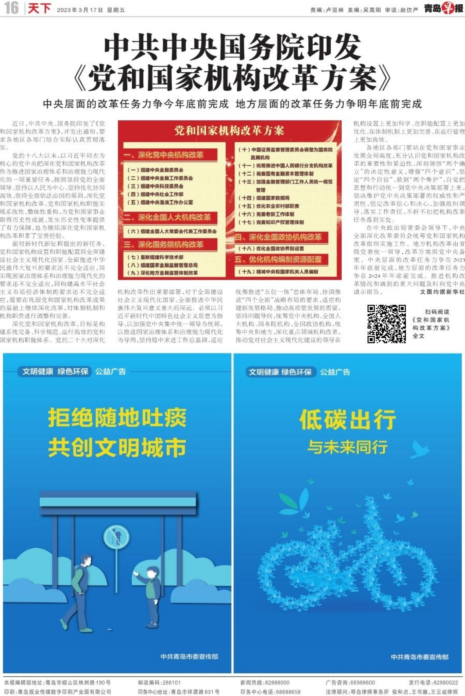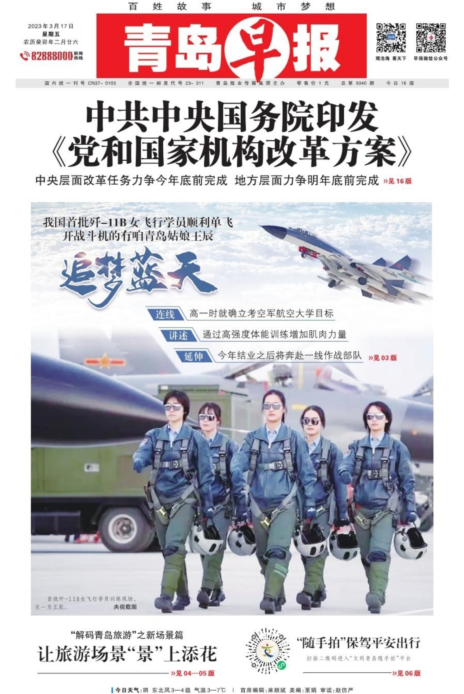 A01 头版 A02 强信心 稳经济 促发展 A03 青岛面孔 A04 相约时尚青岛 共享好客山东 A06 创建全国文明典范城市 A07 城市更新建设,让生活更美好 A08 看见 A09 新时代新征程新伟业 A10 都市圈 A11 身边事 A12 财富汇 A13 理财 A14 星光岛 A15 文艺汇 A16 天下
