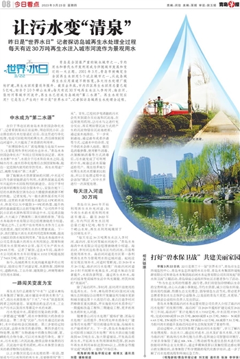 青岛是全国最严重的缺水城市之一,节约用水和替代水开发利用成为伴随城市发展和变迁的一大主题。2001年3月,青岛市被确定为全国再生水回用5个试点城市之一,从此岛城再生水应用渠道不断拓宽,各大污水处理厂提标扩建,再生水回用量逐年提升。截至去年底,市内四区再生水回用总量已超5亿吨,相当于10个崂山水库;每天有近30万吨再生水注入李村河、海泊河、张村河等城市河流中,再生水已经成为岛城的“第二水源”。再生水有何应用?它是怎么产生的?昨日是“世界水日”,记者探访岛城再生水处理全过程。