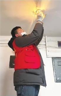 3月20日上午,在西吴路某小区,退役军人崔少杰正在楼道里忙着给居民更换感应灯,这是他3年来定期要参加的公益活动。崔少杰是“海泊老兵志愿服务队”中最年轻的志愿者之一,他加入服务队有3年个年头了,累计更换感应灯近千个。