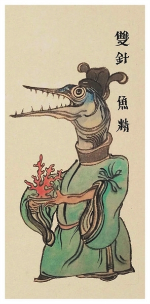 《海洋生物精怪图谱》一书中,有活灵活现的古典图式,考据缜密的传说形象;有鳞片、触须、甲壳、长螯密布的海怪丛林,二百余种海洋精怪群像;也有海面之下,文化与神话碰撞的边缘探讨。尤为值得一提的是,很多国内的志怪绘画,参照的都是日本的妖怪绘,但这本《海洋生物精怪图谱》则另辟蹊径,牛鸿志以中国文化元素进行创作,以传统绘画风格为海怪们造像。正如他本人的学艺之路,“既喜欢陈老莲的‘水浒叶子’,也喜欢民间的传统版画,在临摹的过程中,渐渐演化出一些不同的画风来。关于海怪的创作,就采用了这样的形式。”