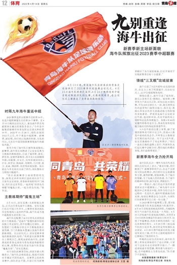2023赛季是职业联赛开启的第30年,也是中超联赛诞生后的第20个赛季。在4月13日晚的出征仪式上,青岛海牛俱乐部副董事长兼总经理张冬表示,“今年是中能集团接棒传承青岛职业足球火种的第19年。2022年11月28日,球队在阔别3312天之后,终于重返中超联赛。新赛季,新征程,我们将以饱满的热情、无私的付出,力求在中国顶级联赛展现海牛的最佳风貌。”