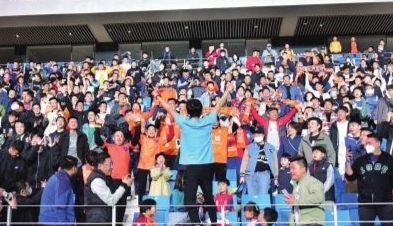 现场热情的球迷。 观海新闻/青报全媒体记者 王雷 摄