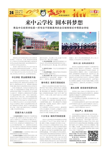 创建于2004年的青岛中云经济贸易学校,是青岛市教育局批准的岛城唯一一所专注于职教高考的全日制寄宿中等职业学校,目前已有多届春考毕业班的升本率达到70%至90%,有的学生本科毕业后,又考研继续深造。