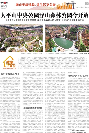 备受市民关注的太平山中央公园、浮山森林公园目前已基本建成,于4月27日正式对市民开放,将成为市民踏青的好去处。打开青岛地图不难发现,浮山、太平山是青岛主城区难得的两块大面积绿色空间。浮山位于青岛市东南部,跨市南、市北、崂山三区,总占地面积约698.98公顷,是青岛城市建成区最大的一片山林绿地。太平山位于青岛老城区,跨市南、市北两区,总面积212公顷,包括中山公园、植物园、榉林公园等多个园区,是市区内最大的综合性公园。不仅如此,浮山还被称为青岛的“城市之肺”,太平山的美景则先后入选“青岛十景”“青岛新十景”,可以说,青岛人对这两座山头公园是情有独钟。近年来,随着城市环境的不断优化提升,人们对于绿色空间也有了更高品质的要求。去年,市第十七届人大一次会议将《关于高品质保护提升太平山中央公园和浮山森林公园的议案》作为大会议案之一。经过数月的顶格推进,浮山、太平山正在不断蝶变。据了解,太平山7.9公里环山绿道已全部贯通,首次实现了中山公园、植物园、榉林公园等多园区融合。浮山主山体环山防火通道(绿道)13.5公里全部贯通,首次实现市南段、市北段、崂山段融合畅通。
