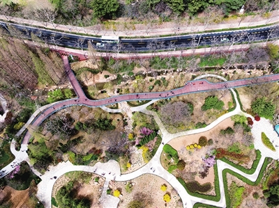太平山7.9公里环山绿道已全部贯通,首次实现了中山公园、植物园、榉林公园等多园区融合。新建花溪谷、桃源山语、松林听风、彩虹栈道、登高观景线、杜鹃谷等景观节点40处,绿道两侧栽植楸树、椴树等乔灌木6500余株,绿化面积52万平方米,设置小品雕塑16组,提升绿道沿线植物多样性和色彩多样化,营造“绿道在林中”的景观效果。