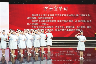 庆祝大会上,医务人员表演的歌曲《你是我的天使》、音乐剧《这世界那么多人》、情景剧《做新时代的提灯女神》等节目精彩纷呈,《我们眼中的白衣天使》《战“疫”青春必有我,不负韶华勇担当》主题演讲令现场观众无不动容,大会在歌伴舞《最美是你》中落下帷幕。