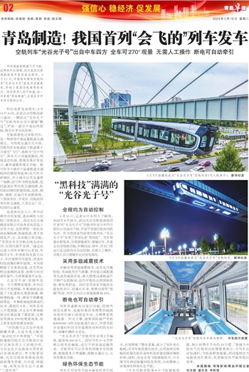 列车悬挂在轨道下方飞驰,这样的科幻场景,近日在武汉东湖新技术开发区成为现实。5月11日,中国首列商用空轨列车“光谷光子号”在武汉试乘发车,开创了我国空轨商用的先河。或许很多人还不知道,这一列车是“青岛制造”,正是出自中车四方股份公司。
