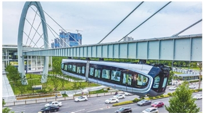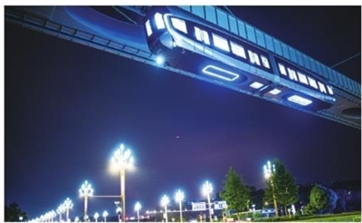 空轨即悬挂式单轨列车,是一种新型中低运量轨道交通制式。与传统交通方式不同,空轨列车车体悬挂于轨道梁下方凌空“飞行”,被称为“空中列车”,具有不占用地面路权、环境适应性强、景观效果好等优点,兼具通勤和观光功能。既可作为大城市大运量轨道交通线网的接驳和延伸;也可作为新城区、中小城市公共交通骨干线路;还可作为特色线路,包括旅游区等内部交通线路,机场航站楼间的接驳线,高铁、城铁、地铁、长途汽车站联络线,大型商务区、开发区、功能场馆等内部交通线,大型企业厂区、校园内交通等。