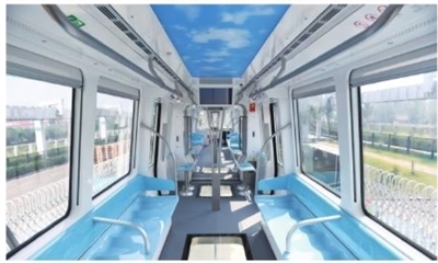 车辆采用多级减震技术,设有充气橡胶轮、类高铁用空气弹簧、多向复合减振器等先进的减震系统,最大限度过滤轨道不平顺产生的振动,运行平稳性达到国标优级,乘坐更舒适。同时采用高效节能的永磁电机牵引、轻量化车身、变频空调等“低碳”科技,列车人均百公里能耗降低15%。