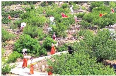 北宅樱桃节开幕式上的大型山间实景演出。观海新闻/青岛早报首席记者 孙启孟 摄