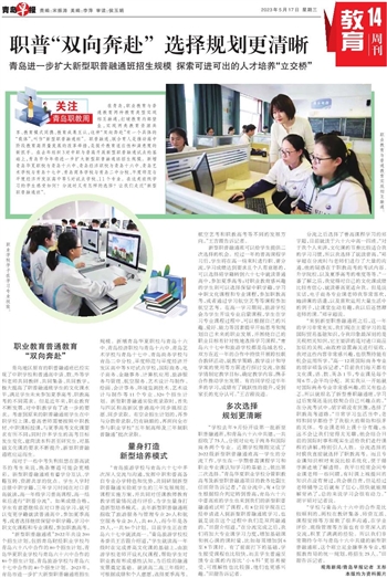 “学校与青岛六十六中的合作是比较顺利的,两校在教研集备、师资互派、课程安排等方面做了很多沟通,在学业评价、班级管理等方面也有非常深入的交流,积累了满满的经验。所以我们非常期待今年与青岛十六中共建的新型职普融通班,这个班立足金融事务专业,根据教育局的统一规划,将招生25人。”田甜告诉记者。