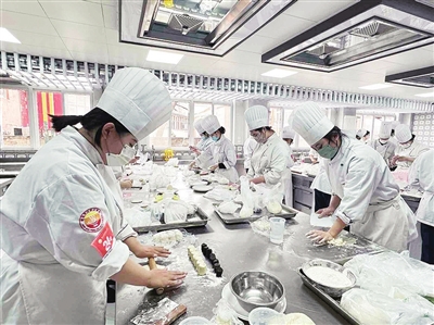 ▲青岛烹饪职业学校学子练习专业技能。
