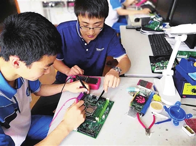 ▼青岛电子学校学生学习专业技能。