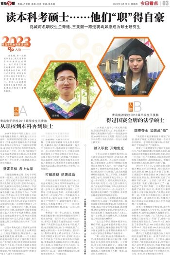 在岛城,有一批职校毕业生,现已是多所名校的本科生或硕士。他们用自己的励志故事证明,职校只是梦想舞台的开始,只要心中有梦想,职校生依然可以通过不断努力,跨进更高学府的大门。青年人生道路的选择是丰富多样的,每条赛道上的奋斗者都是赢家。
