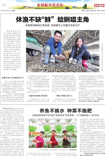 早报5月22日讯 地里种菜,塘中养鱼,二者似乎毫不搭界,但在青岛西海岸新区藏马镇崖下村石榴树下现代农业生态园,将这二者有机结合在了一起,打造出“鱼菜共生”的生态系统。以此为核心,藏马镇崖下村正努力构建“三产融合”的菜篮子产业链,打造一条以生态优先、绿色发展为导向的高质量发展新路径,带动村民增收致富。