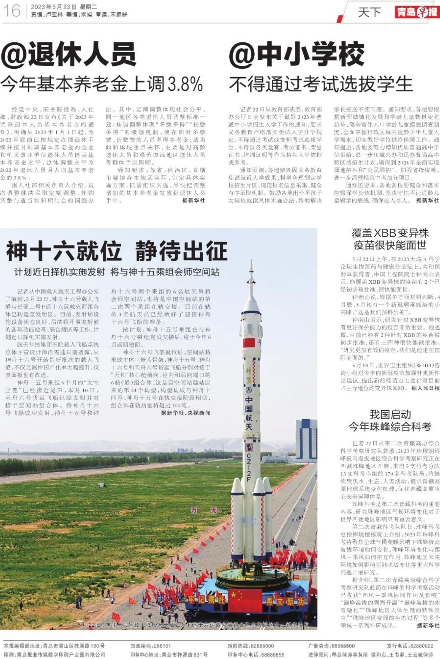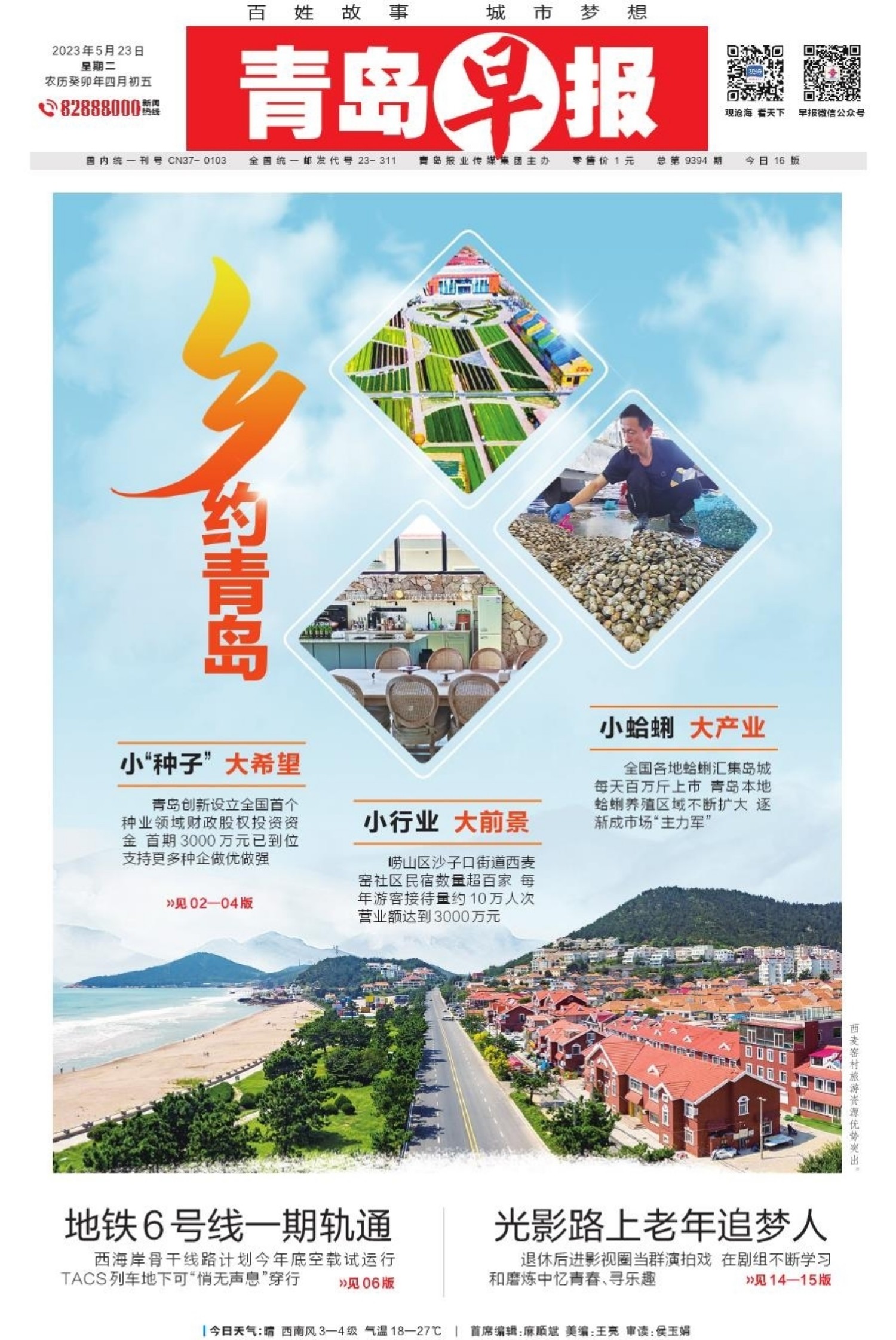 A01 头版 A02 乡村振兴看青岛 A03 乡村振兴看青岛 A04 乡村振兴看青岛 A05 用镜头说话 用影像表达 A06 城市更新建设,让生活更美好 A07 青岛面孔 A08 身边事 A09 都市圈 A10 请拨82888000 A11 爱军之岛 拥军之城 A12 健康 A13 医声 A14 常青树 A16 天下