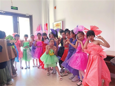 “看到孩子们穿上衣服自信走起来的那一刻,感觉这一个星期的辛苦值了。”刘元娜继续说,小朋友们对服装都非常喜欢,不仅在现场走出了自信的步伐,也增强了环保意识,“之所以用塑料袋、报纸等材料设计衣服,就是想让孩子们关注、重视这些材料在我们生活中的存在,从而合理利用它们。”刘元娜说。