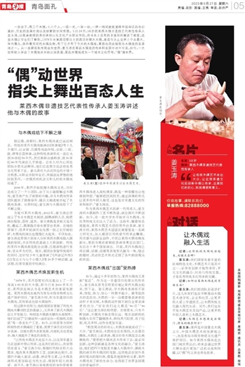 姜玉涛:莱西是中国著名木偶之乡、中国木偶艺术的发源地之一,也是青岛市级非物质文化遗产保护项目。如今莱西木偶戏走出国门被世界认识,将来会通过世界大舞台进行更加广泛的交流和传播,以“偶”代言讲述青岛故事。