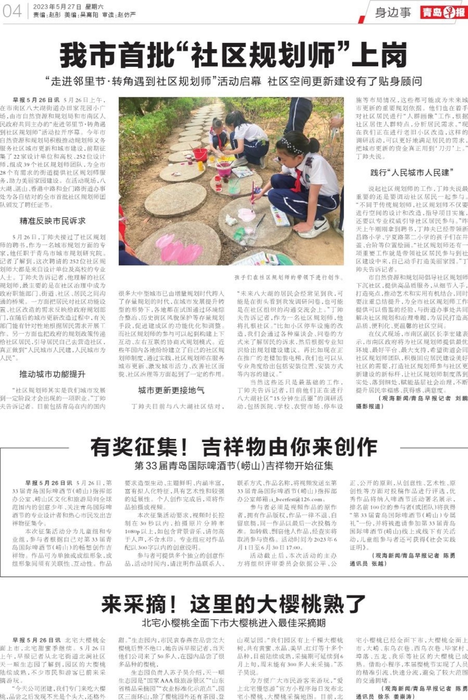A01 头版 A02 城市更新建设,让生活更美好 A03 发布 A04 身边事 A05 青岛面孔 A06 都市圈 A07 警戒线 A08 周末 A09 美食 A10 人文青岛 A11 文艺评论 A12 汽车