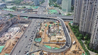 早报6月4日讯 6月3日,海尔路—银川路立交东南象限匝道桥正式通车。该匝道桥位于项目的地下停车场主体结构上方,共5跨,含引道全长共224米,从空中俯瞰如同一个巨大的“C”字,连通了海尔路、银川路,与不久前通车的东北象限匝道桥相对称。据悉,匝道正式通车后,银川路方向自西向东行驶车辆,可由东南象限匝道桥下桥汇入海尔路,有效改善了海尔路、银川路的交通转换能力,同时缓解桥下车辆通行条件。