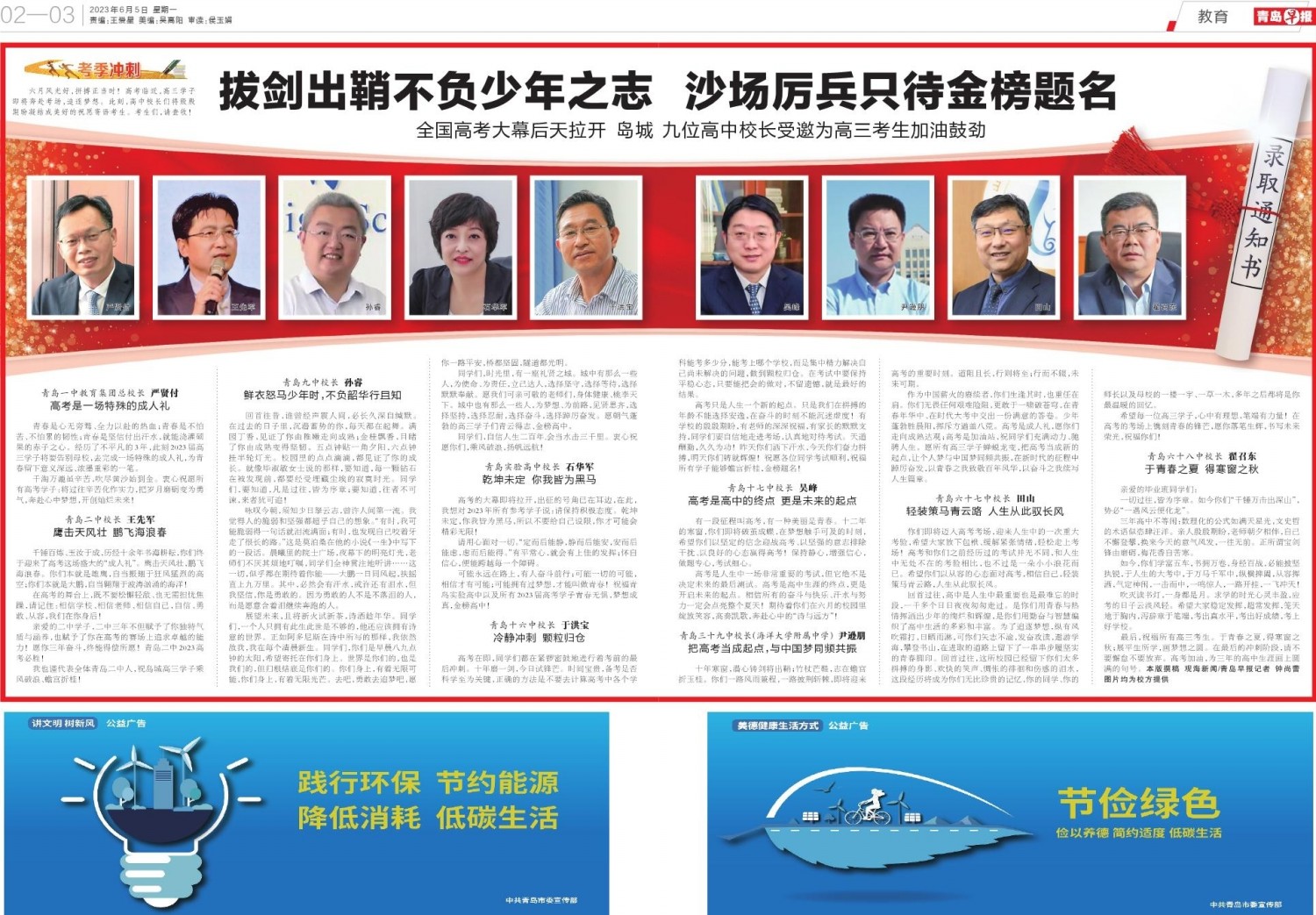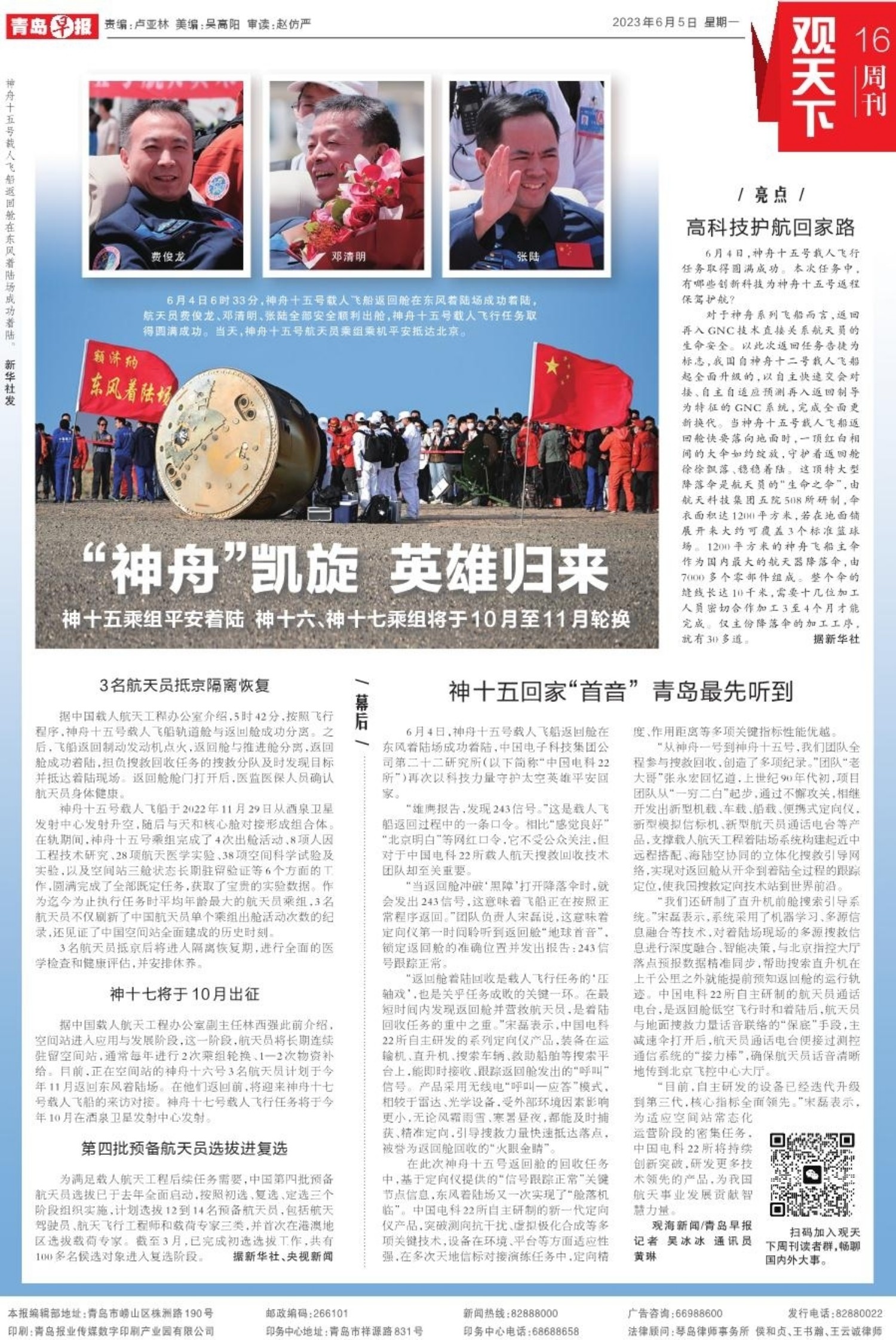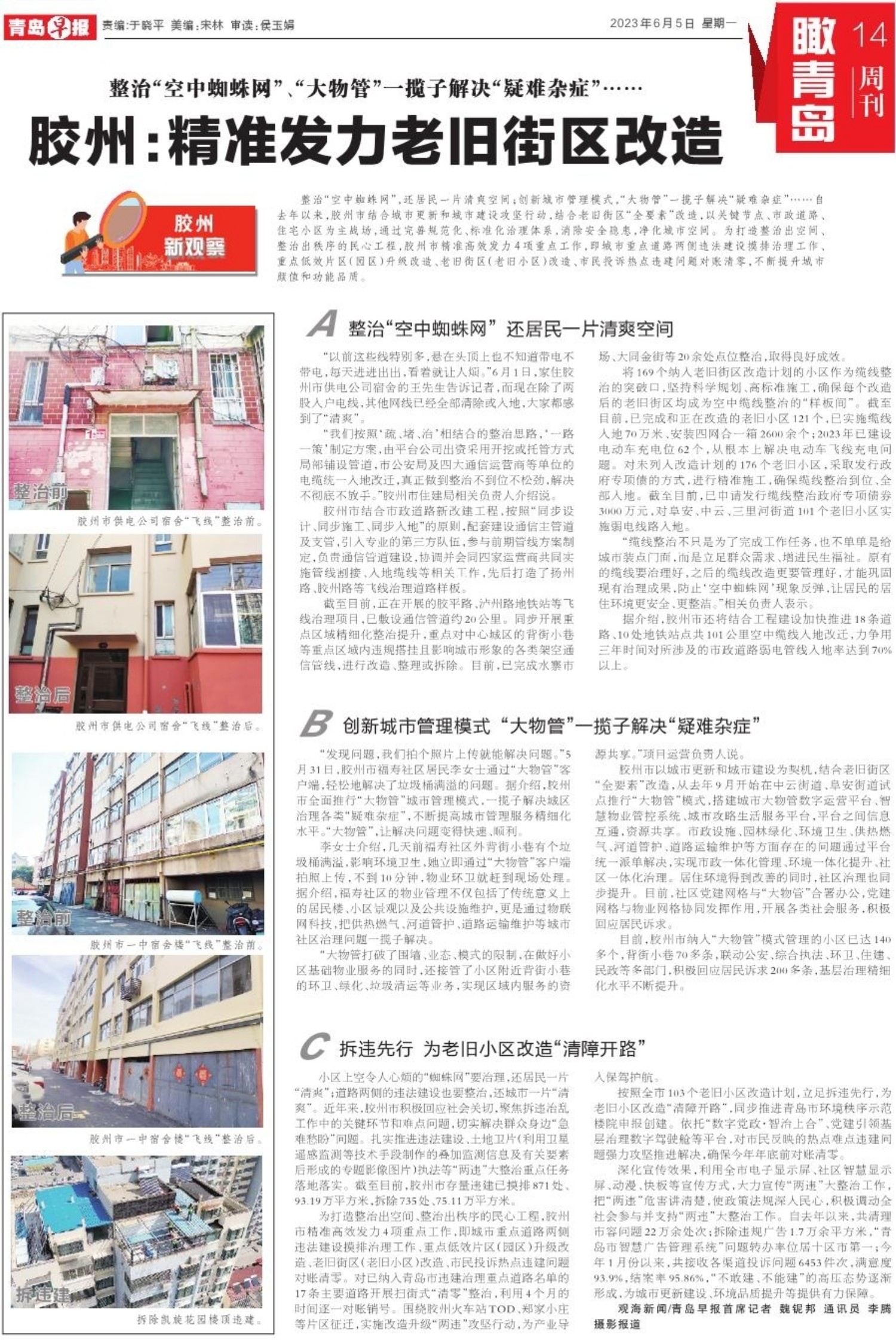 A01 头版 A02 教育 A04 蹲点报告 A06 周一见 A08 周一见 A09 看见 A10 都市圈 A11 城市更新建设,让生活更美好 A12 身边事 A13 体育 A14 瞰青岛 A15 乐游 A16 观天下