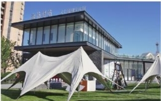 公园入口处的如是书店,建筑外观部分使用了具有山野气息的毛石墙、木材等,营造出静谧的氛围;周边设置休闲吧台,供市民游客闲坐交谈;店内分上下两层,书籍陈列十分有格调,是个适合安静读书的好地方。
