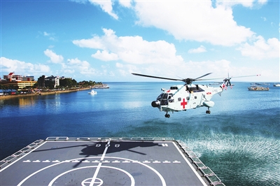 2014年9月26日上午,圆满完成“和谐使命-2014”任务,正在返航途中的“和平方舟”医院船上,一架“直八”舰载救护直升机完成检飞任务后稳稳地停在飞行甲板标志圈内。一名在舰载直升机上爬上爬下、穿着飞行服的老同志正在做飞行后的检查,吸引了大家的目光。这名老同志就是“上天能飞行、落地会维修”的空中机械师蒯守奇。忙完飞行后检查工作,蒯守奇走下飞机,战友们发现他的眼睛湿润了。原来这次检查,是蒯守奇在异国空域飞行中最普通的一次,也是最难忘的一次。因为结束这次“和谐使命”任务回国后,即将52岁的蒯守奇,达到了直升机飞行人员规定的最高飞行年龄界限,将告别蓝天光荣停飞。在南太平洋四国执行的“和谐使命”任务,也是他最后一次随舰执行海外远航任务。