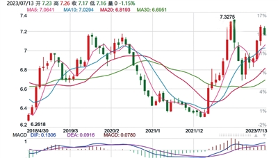 从美元对人民币汇率走势图上可以看出,自2022年3月起,美元对人民币曾出现两波快速上涨,到去年11月1日,在岸美元对人民币涨到7.3275,创下近15年来的新高。不过,在连涨创出新高后,在岸美元对人民币汇率连续3个月快速回落,在2023年1月份最低跌至6.69,但2月起开始反弹,到6月份最高涨至7.2699。总体来看,近几年人民币汇率波动幅度较大,今年上半年人民币贬值幅度达5%。不过,7月以来,在岸美元对人民币汇率从7.26跌回7.16附近,显现出人民币短期由贬值转向升值的势头。