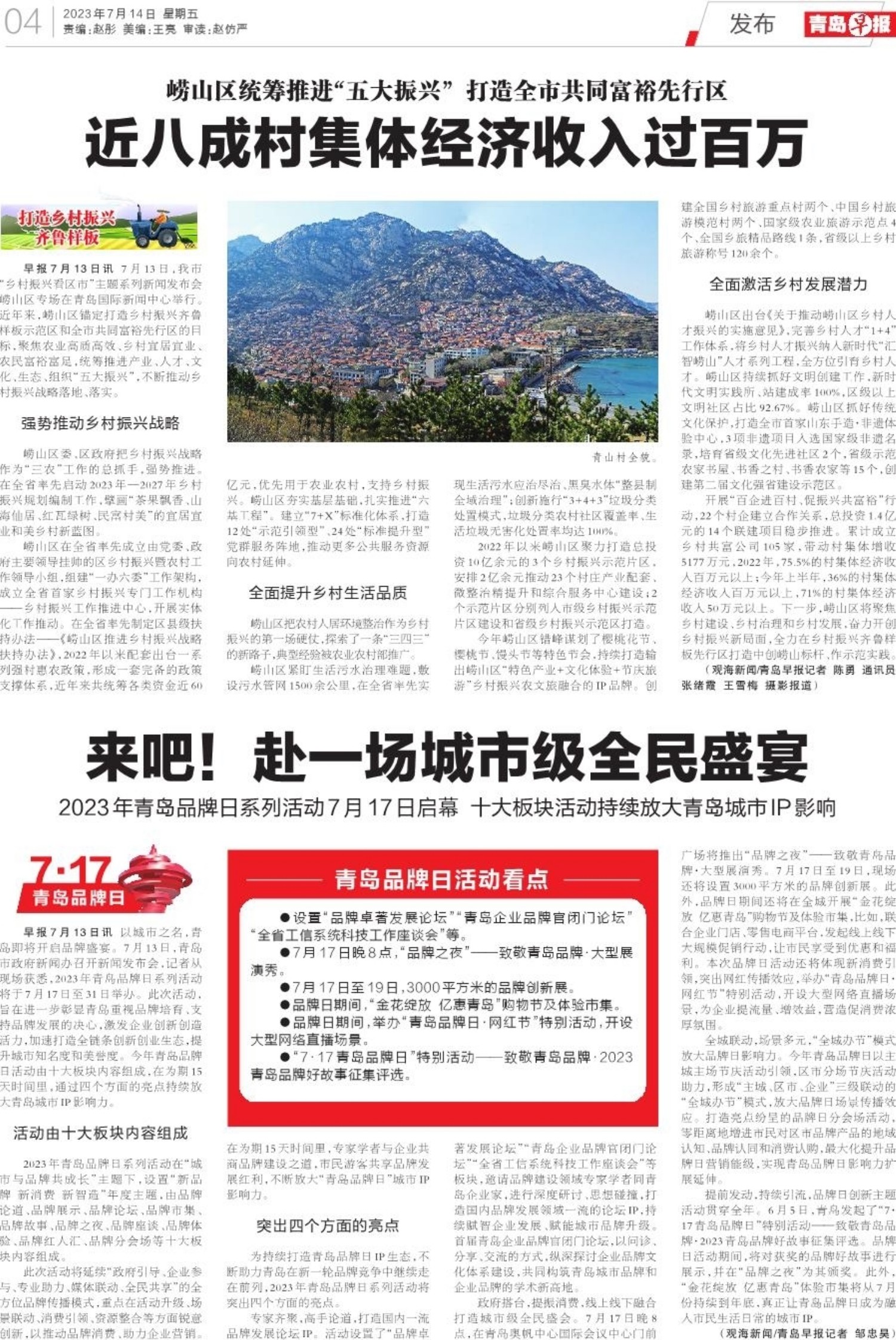 A01 头版 A02 青岛啤酒节 醉美西海岸 A04 发布 A05 教育 A06 蹲点报告 A08 城市更新建设,让生活更美好 A09 暖新闻 A10 都市圈 A11 身边事 A12 荣军敬老 A13 财富汇 A14 理财 A15 星光岛 A16 文艺汇